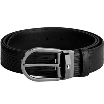 Черный кожаный ремень с подковообразной пряжкой 35мм от магазина премиальных ручек Premium Pens в Новошахтинске.